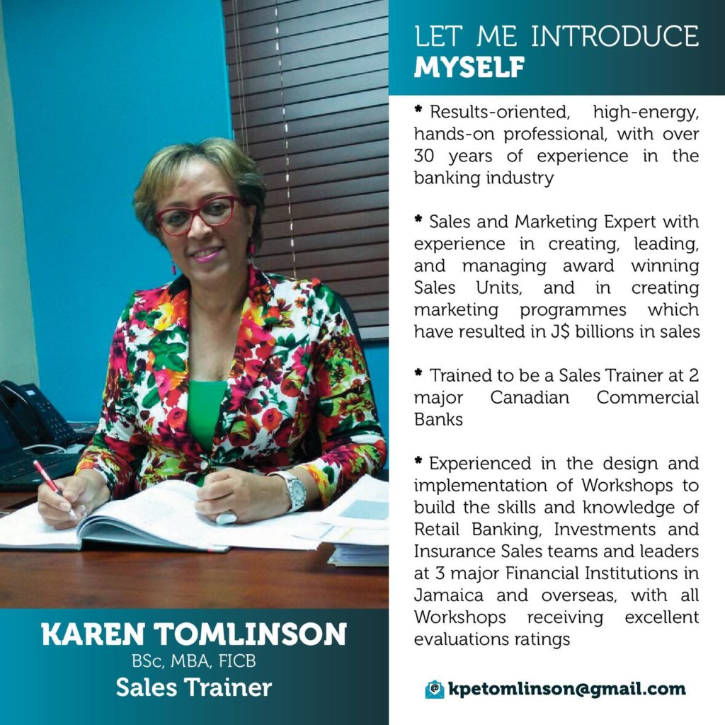 I was instrumental in the design and implementation of a number of Training Workshops at Scotiabank Jamaica, RBC Royal Bank Jamaica and the JMMB Group in Jamaica, Trinidad and the Dominican Republic to build the skills and knowledge of all the Sales & Service teams, including Workshops on Sales Management, Relationship Focused Selling, Proactive Contact Activities, and Personal Banker Workshops. All Workshops received excellent evaluation ratings for knowledge, efficiency, creativity, being interactive and fun, and lots more.